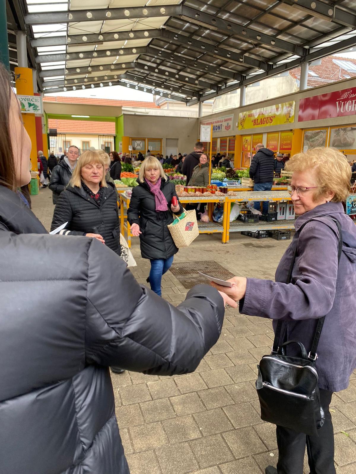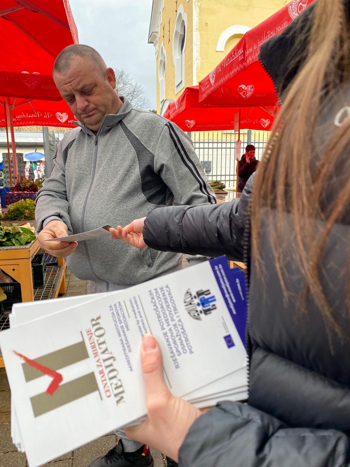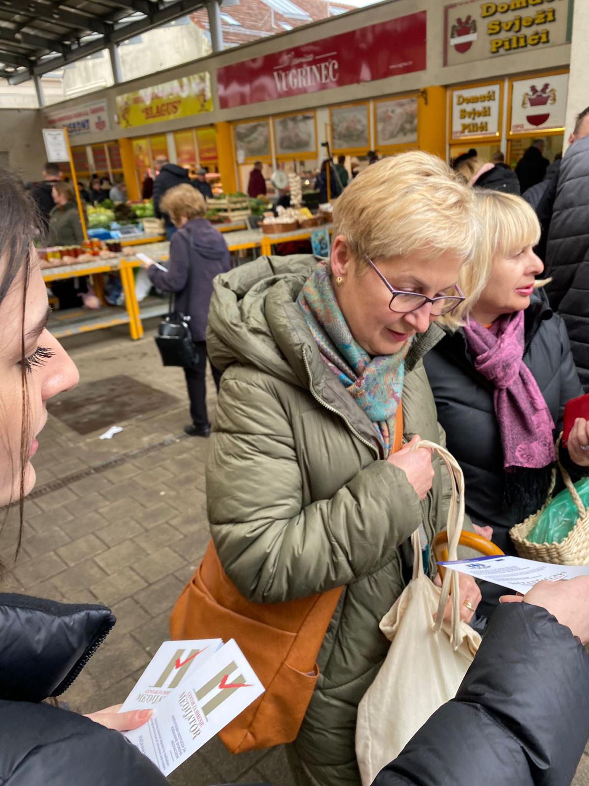 Naš Centar za mirenje „Medijator“, u sklopu provedbe EU projekta “Rješavanje potrošačkih sporova medijacijom- osnažuje povjerenje potrošača i trgovaca”u Varaždinu , 25.02.2023. na gradskoj tržnici
